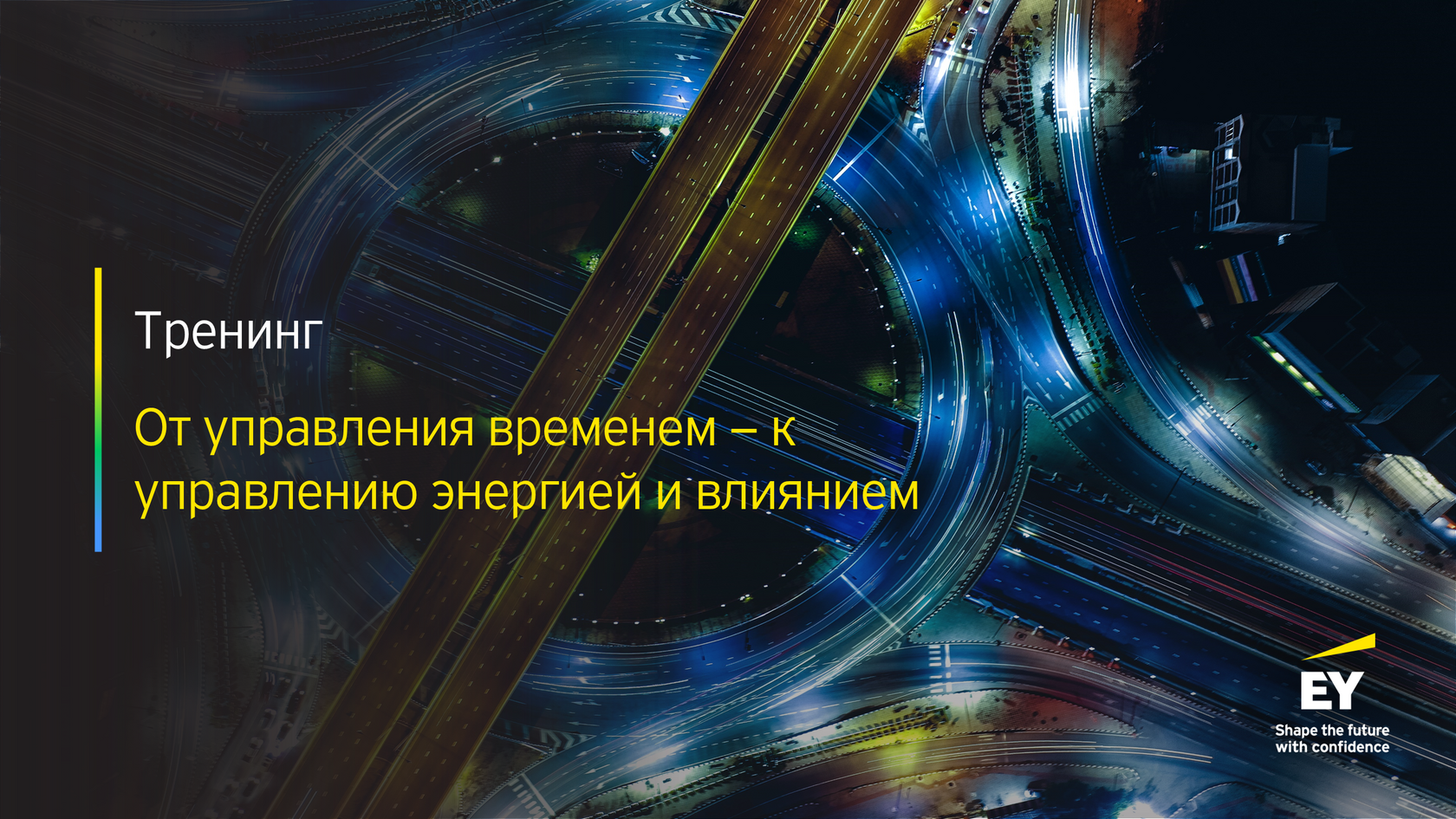 | | Академия бизнеса EY Кавказ и Центральная Азия | | | | | От управления временем — к управлению энергией и влиянием | В эпоху перегрузок и постоянных перемен лидерам нужна не скорость, а ясность. Не больше часов — а больше энергии, фокуса и осмысленного действия. Этот тренинг — о том, как: - перестать реагировать и начать выбирать,